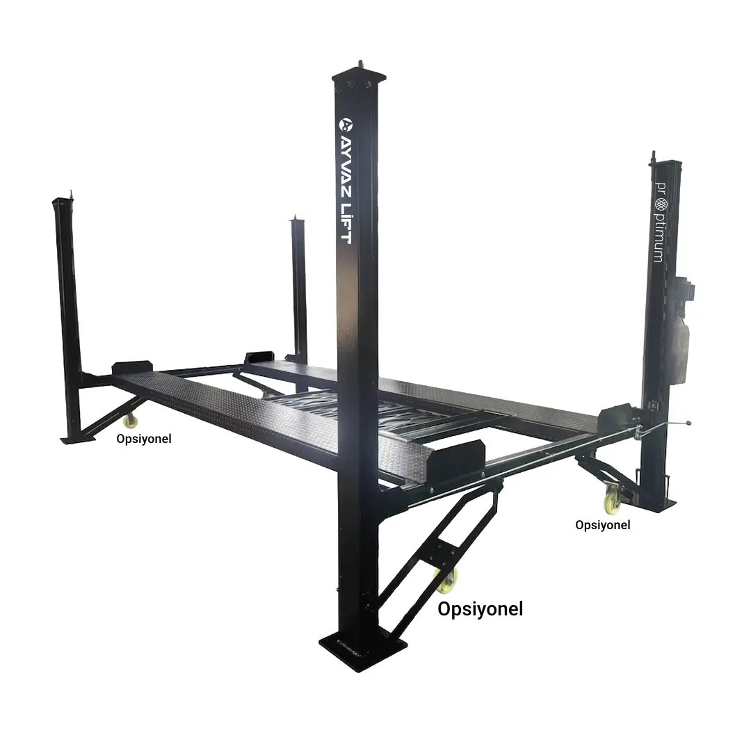 4 sütunlu otopark lifti, 4 ton kaldırma kapasitesi ile araçların güvenli, dengeli ve pratik bir şekilde park edilmesini sağlar. Geniş platform yapısı sayesinde özellikle alan tasarrufu sağlamak ve araç sayısını artırmak için ideal bir çözümdür.